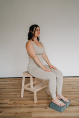 Position: Im Sitzen auf einem Hocker oder einem Stuhl mit gerader, nicht zu weicher Sitzfläche.
